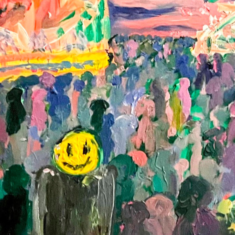 Pieces like Funnel Cake and F*ck It use layered acrylics, recycled materials, and bold brushstrokes to depict the tension between internal thoughts and external presentation. The abstract forms and textured surfaces reflect both struggle and liberation, inviting viewers to confront their own emotional landscapes.